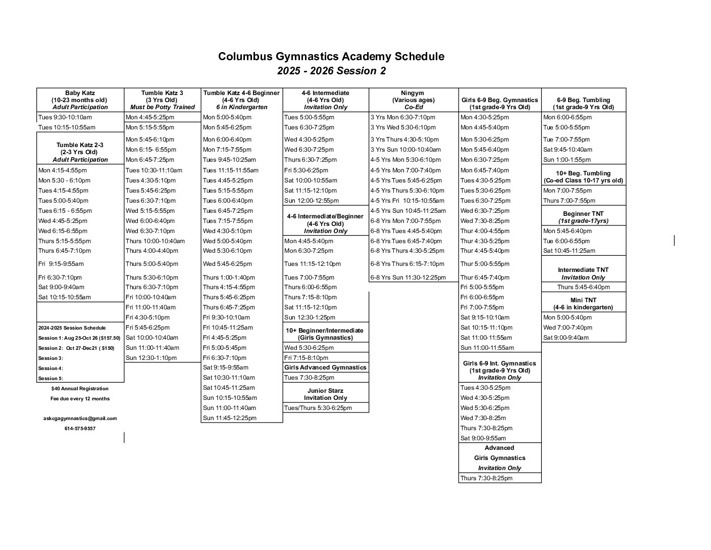 There’s so much happening at Columbus Gymnastics Academy that it can be tough to keep track! Whether it’s a regular day of class or it’s summer, and it’s time for gymnastics camp there’s always action at our gym. We’ve created this calendar to keep our parents in the know.